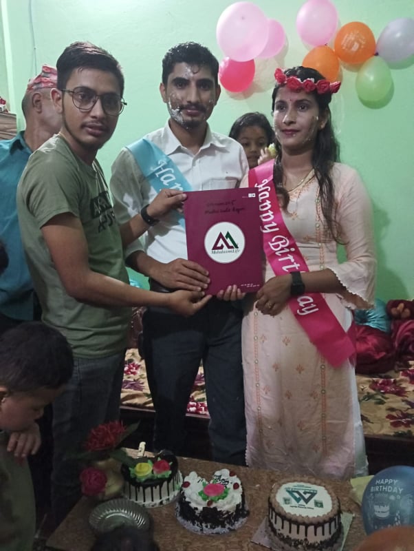 घिमिरेले श्रीमतिलाई जन्मउत्सवमा उपहार स्वरुप महालक्ष्मी सावधिक विमा पोलीसी उपहार दिएका हुन ।