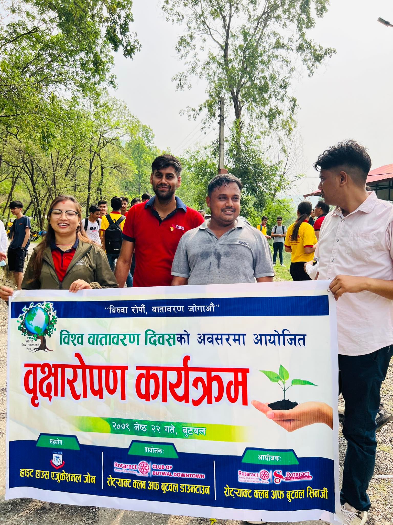 शिक्षामा बिगत १४ वर्ष देखि लुम्बिनी श्रेत्रकै केन्द्रबिन्दु मानिने बुटवलमा Bridge_course तथा Entrance preparation class संचालन गरि MBBS,BE ,STAFF_NURSE, लगायत अन्य धेरै विषयमा पुर्ण छात्रवृत्तिमा नाम निकाल्न सफल एक मात्र शैक्षिक सस्था ह्वाइट हाउस एजुकेसनल जोनले विश्व वातावरण दिवसको अवसरमा “विरुवा रोपौ वातावरण जोगाउ”भन्ने मुल नाराका साथ बृक्षारोपण कार्यक्रम सम्पन्न भएको थियो।