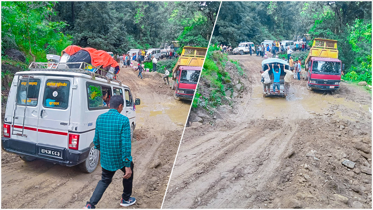 पुन सडक भाँसिएर मर्मत नहुँदा पुन सडक भाँसिएर सवारी साधानहरुलाई आवात जावतमा निकै सास्ती खेस्नु परेको छ । राप्ती नदि माथीबाट पहाडसँगै सडक भाँसिएको छ ।