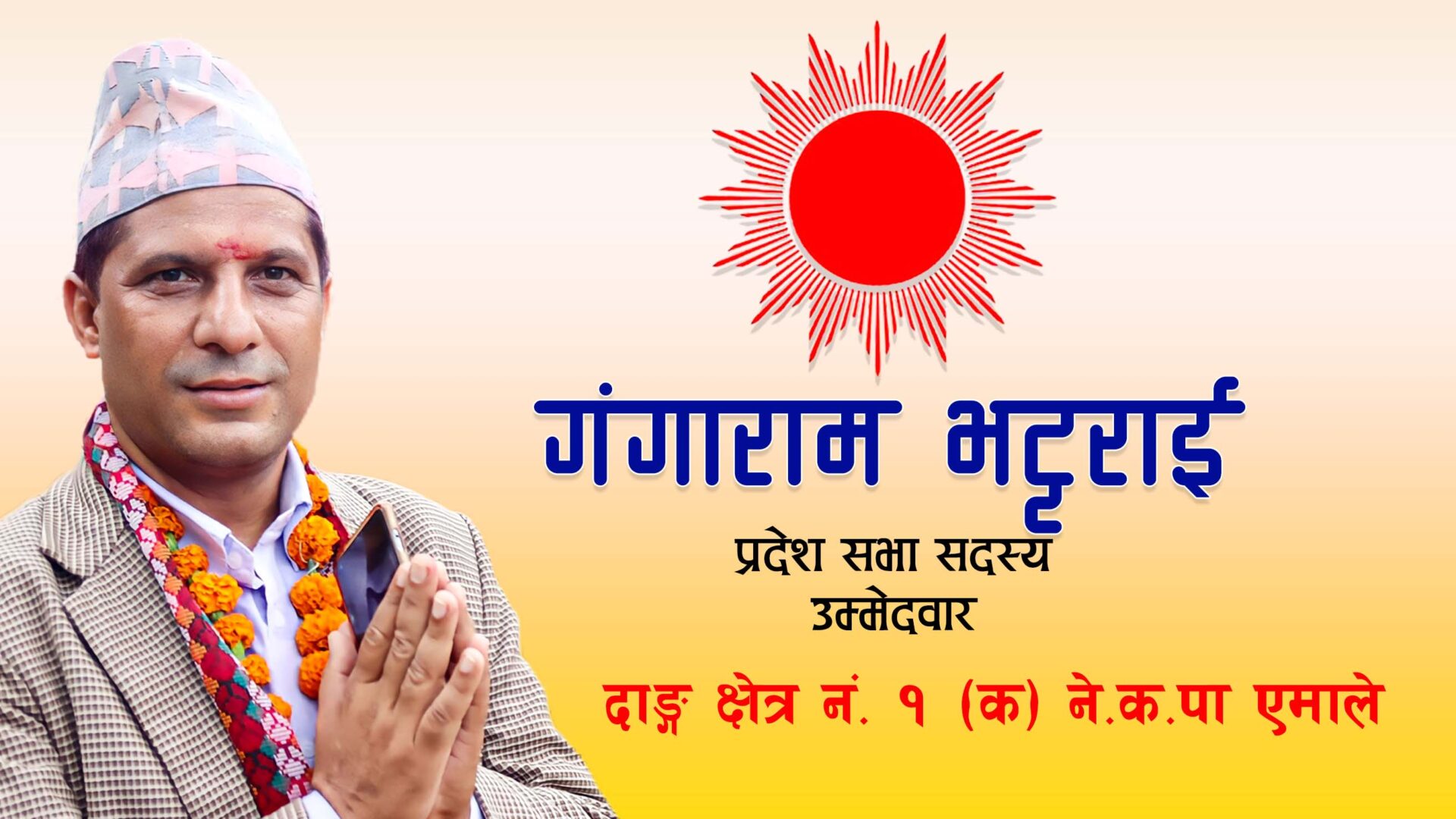 गंगाराम भट्टराई दाङ देउखुरीका लागि एउटा नाम मात्रै होइन, ब्राण्ड बनिसकेको छ । सामाजिक क्षेत्रमा निकै सक्रिय गंगाराम भट्टराई अहिले निर्णायक राजनितीक यात्रामा अघि बढ्नु भएको छ । नेकपा एमाले लुम्बिनी प्रदेश कमिटी सदस्य भट्टराई मंसिर ४ गते हुदै गरेको प्रदेश सभा सदस्य प्रत्येक्ष निर्वाचनमा दाङ क्षेत्र नम्बर १(१) को प्रदेश सभा सदस्यको उम्मेदवार हुनुहुन्छ ।