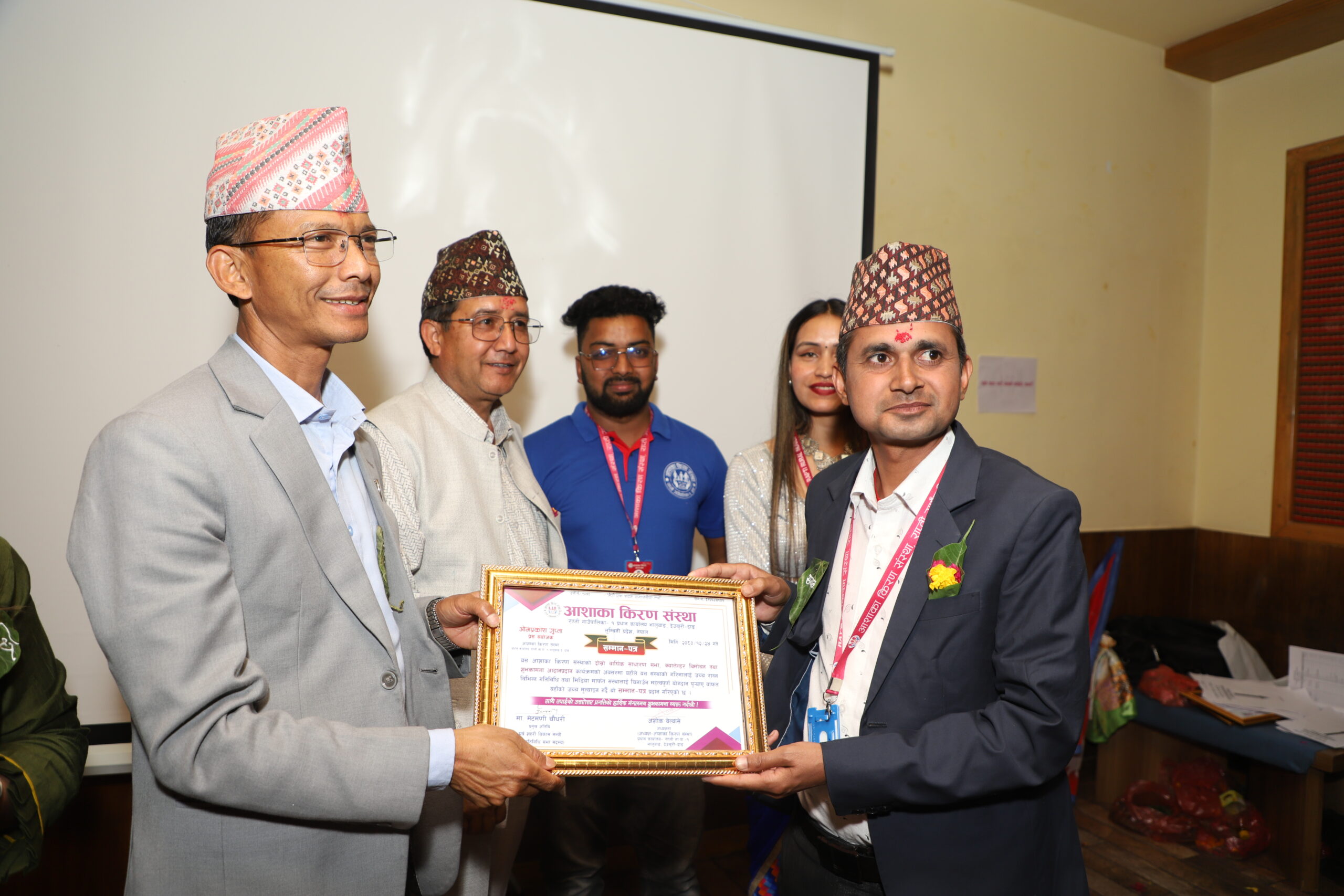 भने संस्थाको विभिन्न गतिविधिमा महत्त्वपूर्ण योगदान पुर्याउने संस्थाका संस्थापक अध्यक्ष सुर्यकिरण केसी, सल्लाहकार प्रेस संयोजक ओमप्रकाश गुप्ता र कार्यसमितिमा रहि बढी क्रियाशील रहेकी अस्मिता अधिकारीलाई संस्थाले सम्मानपत्र सहित सम्मान गरेको थियो ।