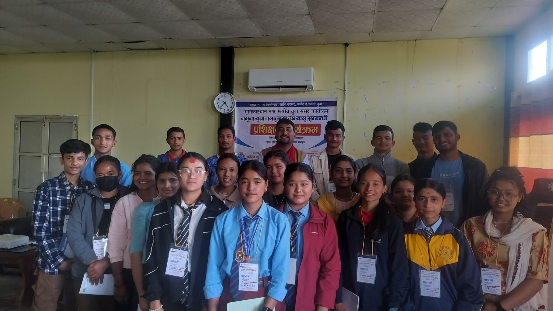 भूमिकास्थान नगरपालिकाकाे आयोजना तथा राष्ट्रिय युवा परिषद् सानोठिमी भक्तपुरको सहजीकरणमा आइतबारदेखि शुरु भएको नमुना युवा नगर सभा अभ्यास कार्यक्रमकाे भूमिकास्थान नगरपालिकाका नगरप्रमुख झविलाल थापाले उद्घाटन गर्नुभएको हो।