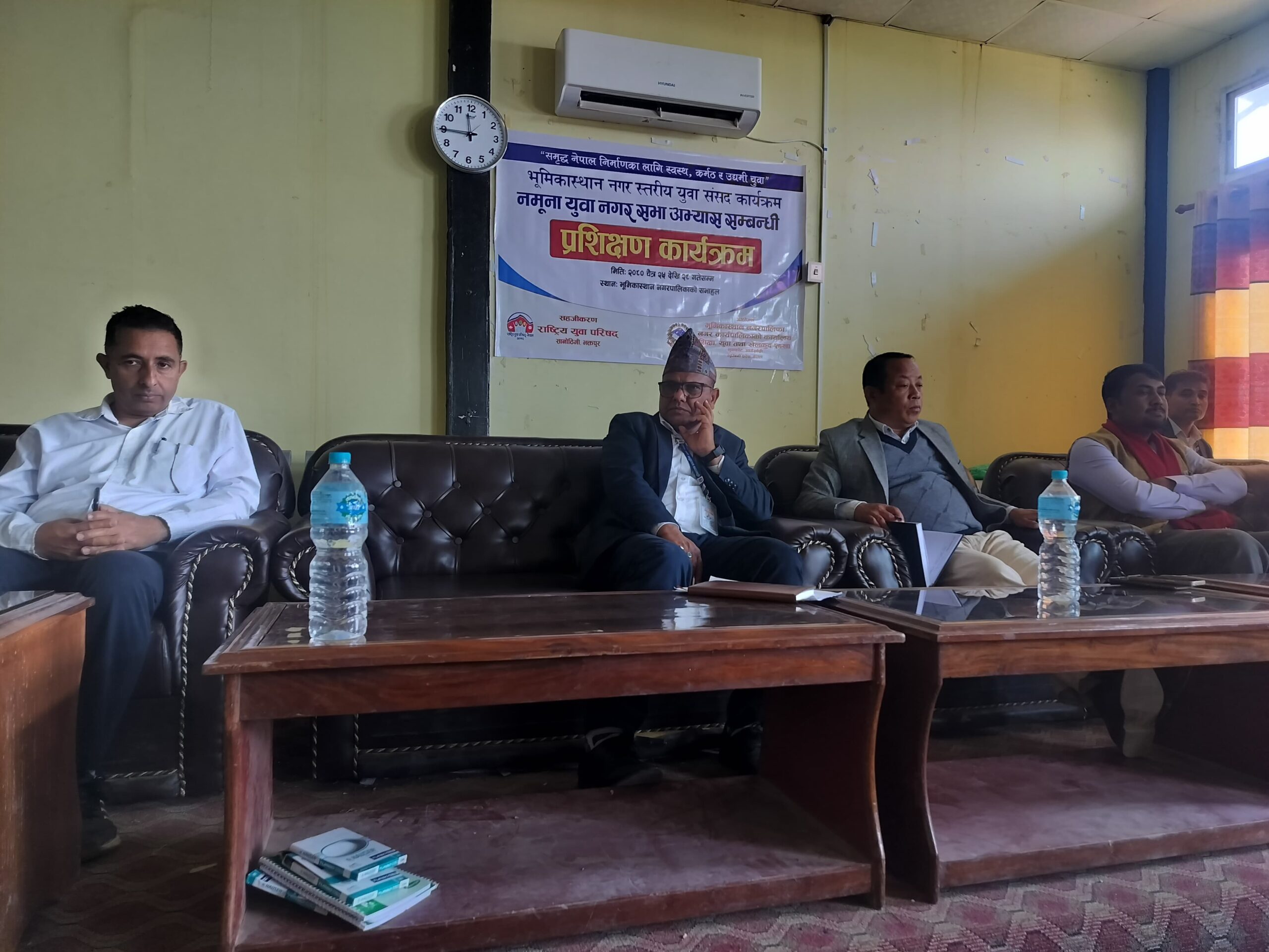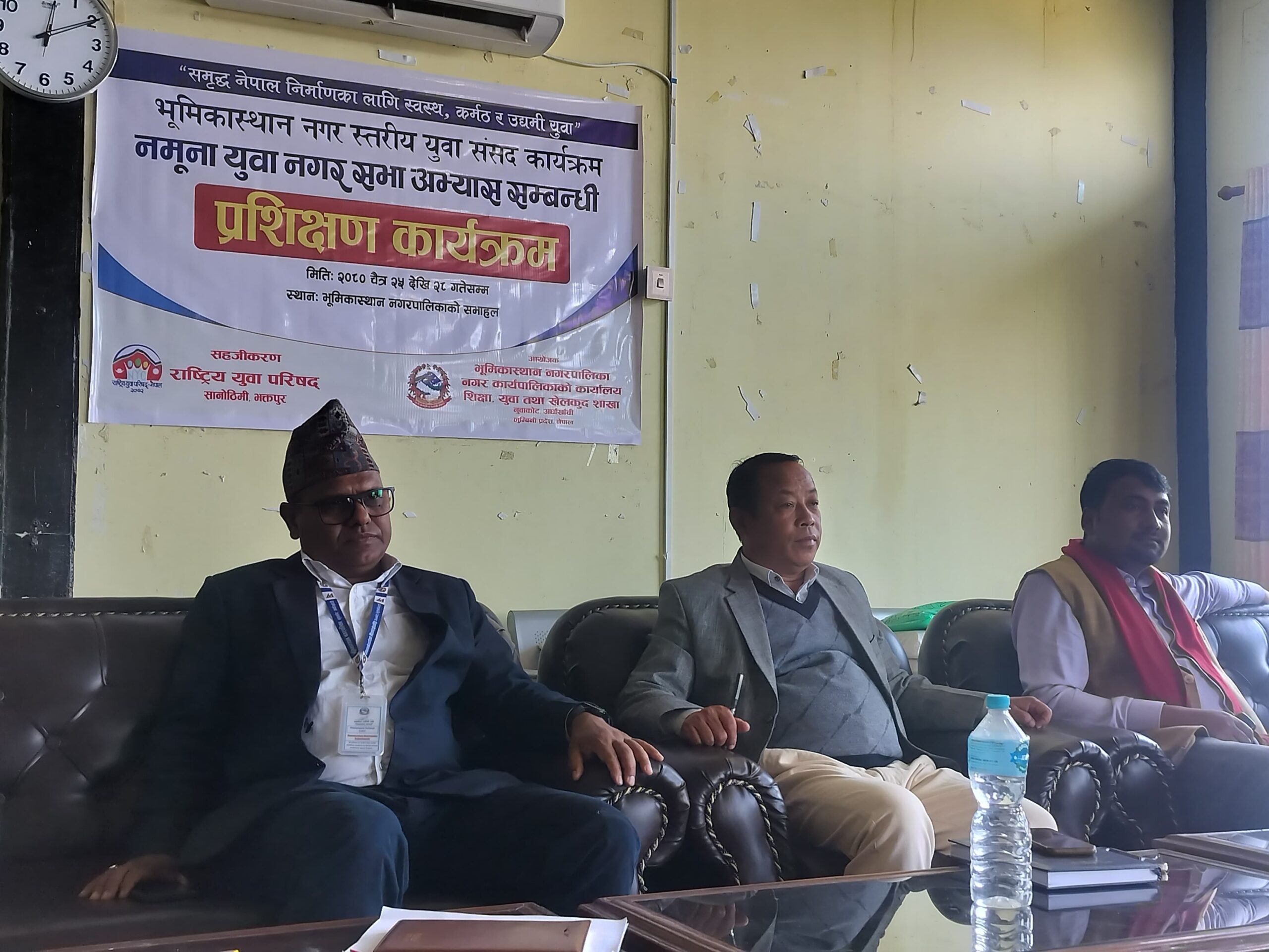 भूमिकास्थान नगरपालिकाकाे आयोजना तथा राष्ट्रिय युवा परिषद् सानोठिमी भक्तपुरको सहजीकरणमा आइतबारदेखि शुरु भएको नमुना युवा नगर सभा अभ्यास कार्यक्रमकाे भूमिकास्थान नगरपालिकाका नगरप्रमुख झविलाल थापाले उद्घाटन गर्नुभएको हो।