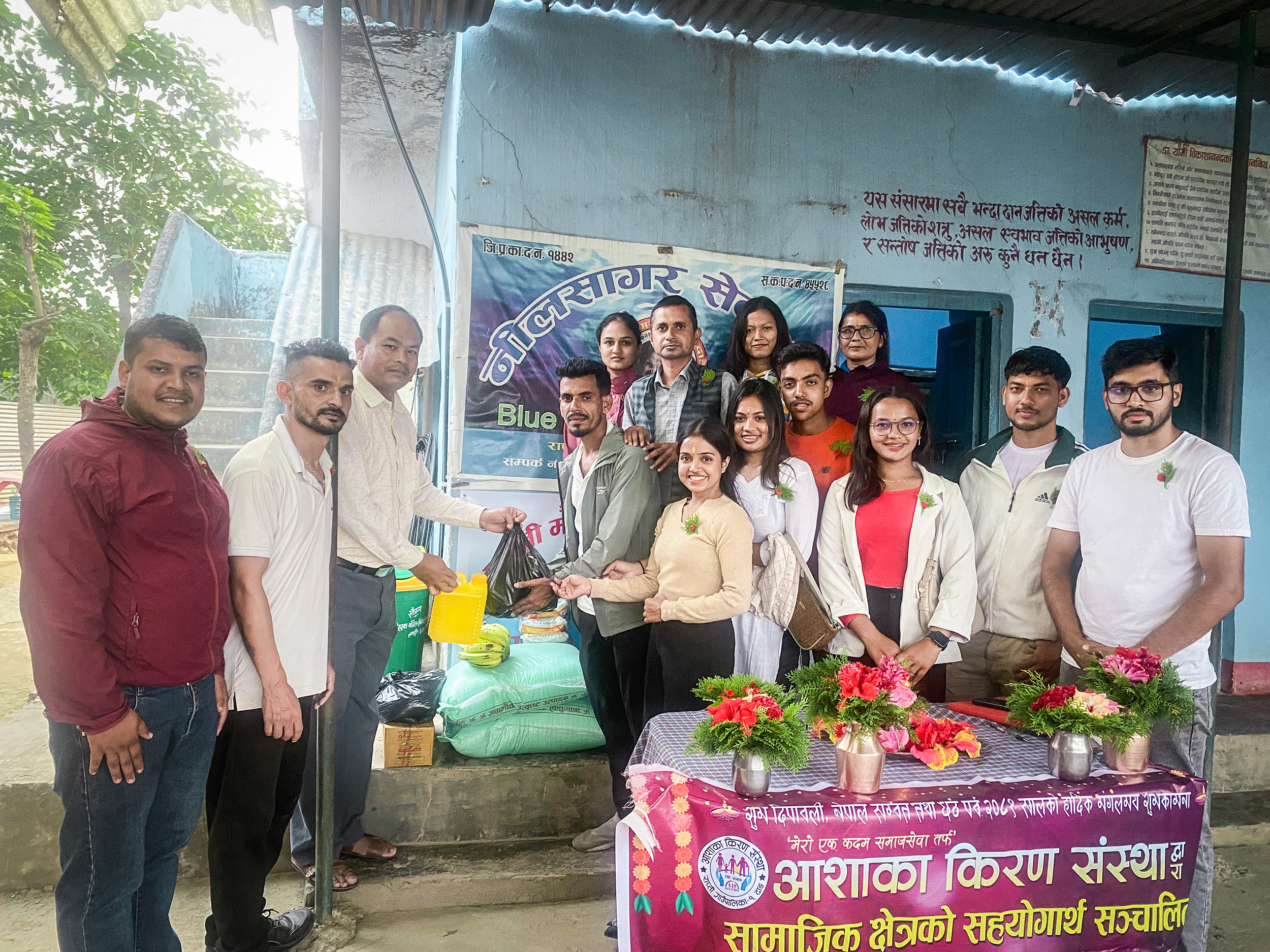 संस्थाका अध्यक्ष अशोक बेल्वासेले निलसागर सेवा आश्रमका कार्यवाहक अध्यक्ष गरिवु चौधरी र दृष्टिविहिन छात्राबासमा विद्यालयका प्रधानाध्यापक पुर्ण बहादुर क्षेत्रीलाई सो खाद्य सामाग्री हस्तान्तरण गरेका छन् । भैलोबाट संकलित रकमले पिकनिक खाने, भ्रमण जाने वा फजुल खर्च गर्नु भन्दा सडक आश्रित मानव तथा असाय, बेसाहाराहरुलाई सहयोग गर्नु पवित्र कार्य हुने भन्दै संस्थाले ५० प्रतिशत रकम सामाजिक कार्यमा खर्च गर्ने निर्णय बमोजिम आश्रम र छात्राबासमा सहयोग गरेको संस्थाका अध्यक्ष अशोक बेल्वासेले बताएका छन् ।