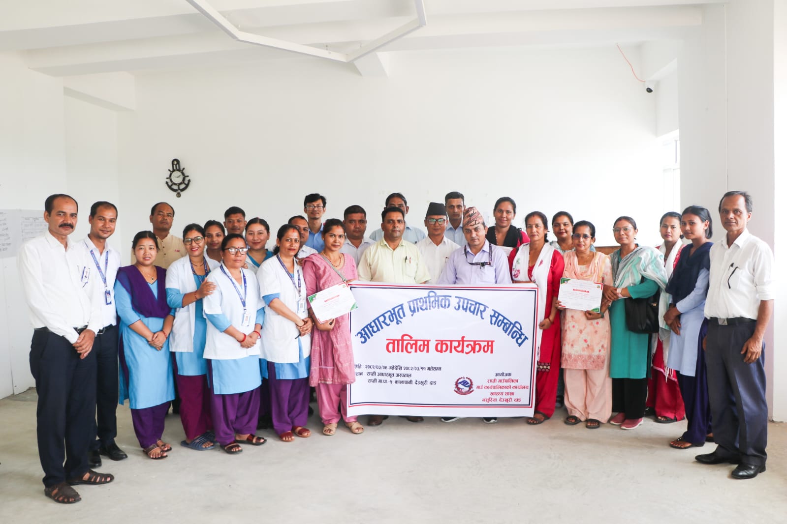 राप्ती गाउँपालिका स्वास्थ्य शाखाको आयोजनामा वडा नं. ५ स्थित राप्ती आधारभूत अस्पताल कालापानीमा सञ्चालन गरिएको उक्त तालिममा प्राथमिक उपचारको परिचय, घाइतेको प्रारम्भिक जाँच, बेहोसी अवस्थाको उपचार, रक्तश्राव नियन्त्रण, टाउको र मेरुदण्डको चोट व्यवस्थापन, हाडभाँचिएको अवस्थामा अपनाउने उपाय, पट्टीको प्रयोग, विषालु जिव जनावरको टोकाइ, वातावरणीय स्वास्थ्य समस्या, घाइतेको सुरक्षित ओसारपसार लगायतका विषयहरूमा जानकारी गराइएको थियो।