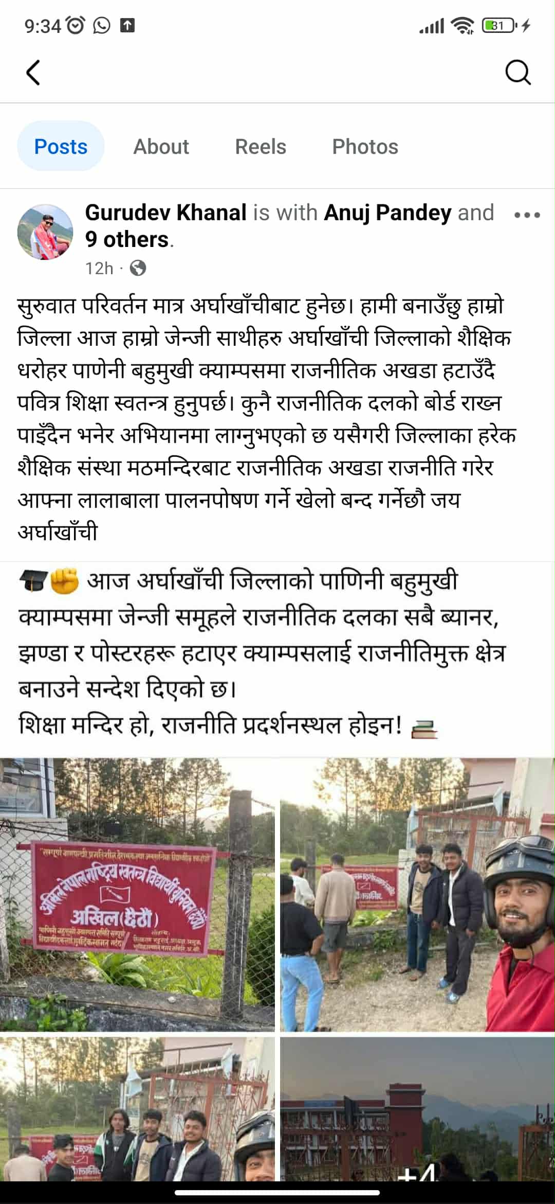 समाजका धेरै बिसङ्गतीका विरुद्ध आन्दोलन छेड्ने विद्यार्थी सङ्गठनलाई निषेध गरेर विद्यार्थी सङ्गठन चाहिन्न भन्दै बोर्ड फोर्दै हिँड्नेहरूले क्याम्पसहरूमा अर्को राजनीति गरेका छन् । हरि भुसाल जो अर्घाखाँची रास्वपाका सभापती हुन्, उनले बोर्ड फोड्ने गतिविधिलाई खुसीका साथ शेयर गरेर के पुष्टि गरेका छन् भने हिजो आन्दोलनका नाममा रास्वपाको कार्यालय फोडिनु ठिकै थियो । यस्तो कार्य स्वभाविक हो र मन नपरेमा फोड्ने नै हो । के उनको निष्कर्ष यहि हो ? उनले सार्वजनिक रूपमा जवाफ दिनुपर्छ । तर उनले त आफ्नो कार्यालय फोड्नेलाई पापी पो भनेका छन् । आफ्नो फोर्दा फोरेको पापी, रूले त्यस्तै मिहिनेत गरेर बनाएका बोर्ड फोड्दा देश बनाउने ! यस्तो कहाँको धर्म हो ?