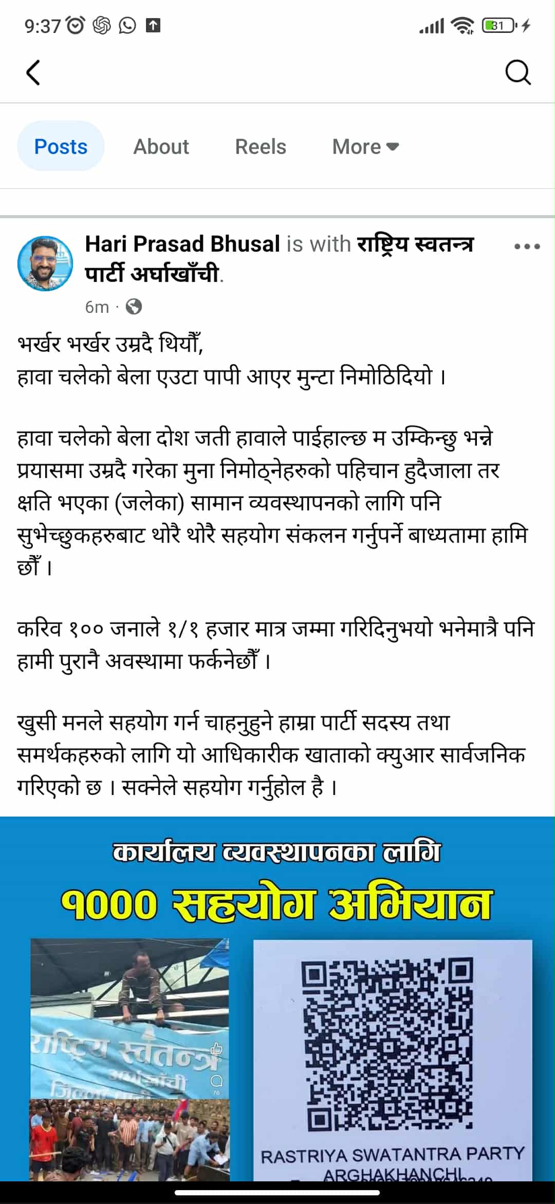 त्यस्तै गुरुदेवले आफुलाई पत्रकार ठान्छन् । मैले ब्यक्तिगत रूपमा त उनलाई पत्रकार नै मान्दैन, प्रोपोगन्डाका योजनाकार मान्छु तर यो मेरो ब्यक्तिगत धारणा हो । म ब्यक्तिगत रूपमा उनका सूचनालाई आधिकारिक मान्दैन । मान्न पाउने/ नपाउने मेरो स्वतन्त्रता हो, त्यस्तै पत्रकारिता गर्ने उनको । तर उनले अर्घाखाँचीमा स्वतन्त्र पत्रकार भनेर एउटा सङ्गठन खोलेका छन्, त्यस्तै स्वतन्त्र नागरिक अभियान भनेर अर्को गतिविधि थालेका छन् । जसले आफ्नो सङ्गठन खोलेको छ, उसैले अर्को सङ्गठन चाहिन्न भन्न मिल्छ ? यो कुनै नैतिकताले दिने कुरा हो ? यो प्रश्न पोस्ट पढ्ने सबैलाई हो, तपाईंहरू आफै मुल्यांकन गर्नुहोला ।