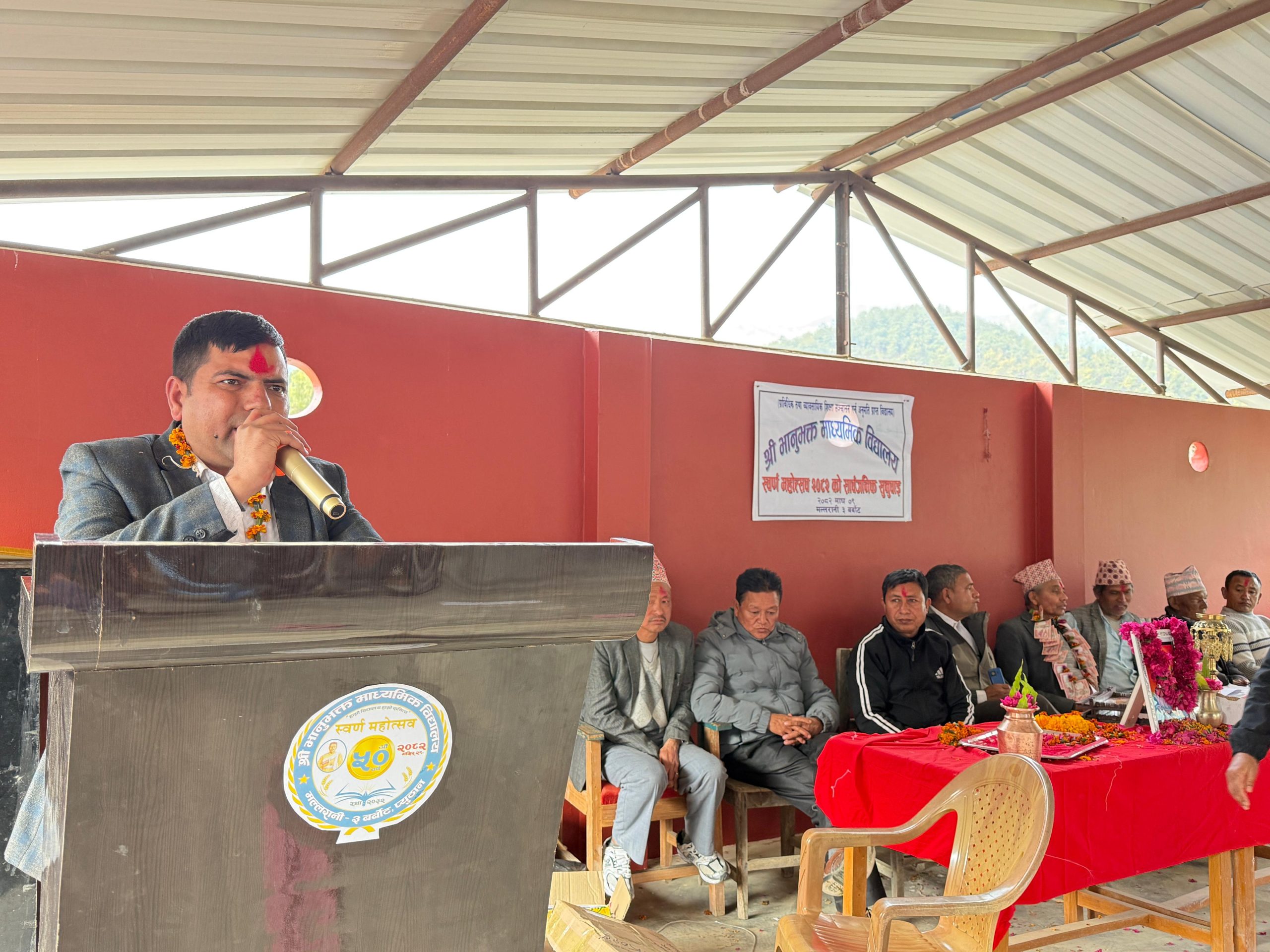 विद्यालय व्यवस्थापन समितिका अध्यक्ष जिवलाल खत्रीले स्वर्ण महोत्सव सफल बनाउन सहयोग गर्ने सम्पूर्ण दाता, शिक्षक, विद्यार्थी, अभिभावक तथा शुभेच्छुकप्रति धन्यवाद व्यक्त गर्दै विद्यालयलाई नमुना शैक्षिक संस्थाको रूपमा विकास गर्ने लक्ष्यमा समिति दृढ रहेको बताउनुभयो।