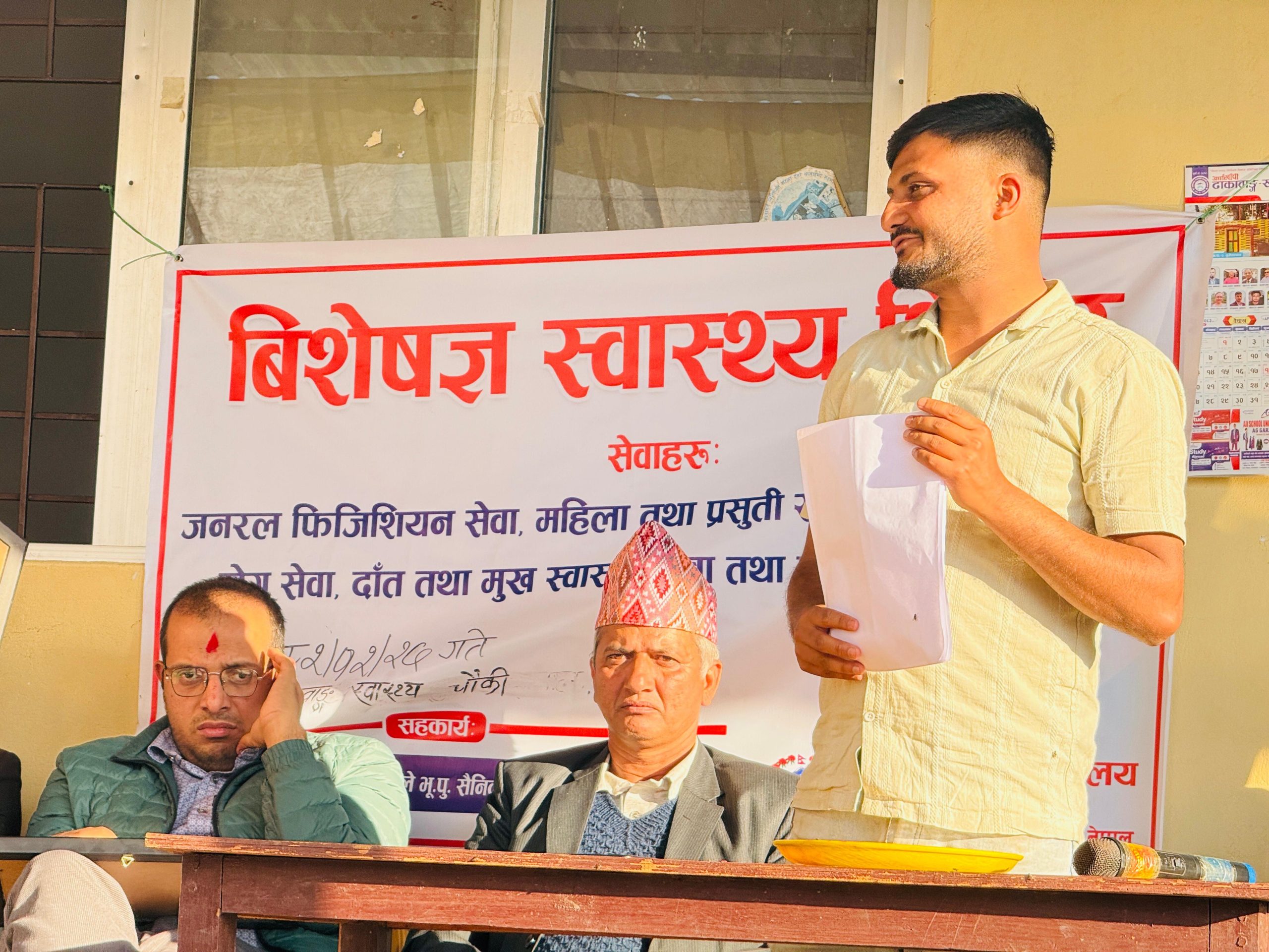 भूमिकास्थान नगरपालिकाको सहकार्यमा चैत २७ गते ढाकावाङ्ग स्वास्थ्य चौकीमा आयोजना गरिएको उक्त बृहत् स्वास्थ्य शिविरमा विभिन्न रोगका विशेषज्ञ चिकित्सकहरूले सेवा प्रदान गरेका थिए।