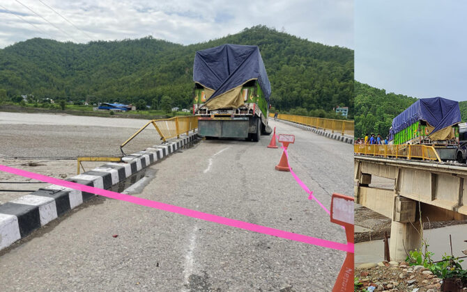 राप्ती पुलमा ट्रक ठुलो दुर्घटना हुनबाट बच्यो, पुलमा क्षेती