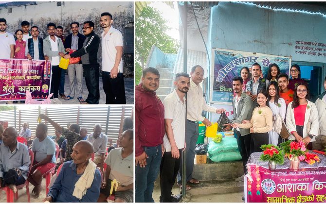 आशाका किरण संस्थाद्वारा देउसी भैलोबाट उठेको रकमबाट निलसागर र दृिष्टीबिन छात्रावासलाई खाद्यान्न सहयोग